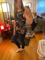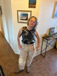 I had intended to wear this without a jacket and with some leather pants. But I was unable to zip it at the top back. So I threw a black jacket on for work/zoom and it was great. Will try again in a size up.