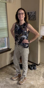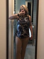 This top was fashionable, hid my belly and was comfortable to wear. I am between a 12 and 14. The 12 worked but if I had a 14 I think that would’ve worked as well.