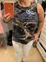 Great fit and so many different ways to wear this. Wore with jeans and to work under blazer. Long enough to tuck in but not too long that it couldn’t be worn out. Loved the print and twisted fabric under neckline. Will rent again.