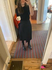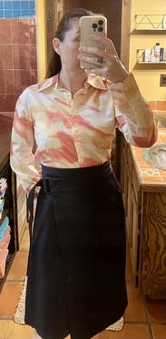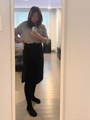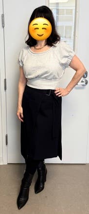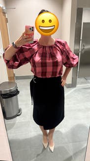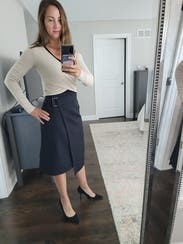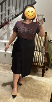 I liked the fit of this skirt. Nothing super special, but great quality black skirt that feels a bit elevated with the belt detail and thickness of the fabric. I would rent again for work wear.