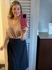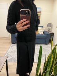 Fun asymmetrical detail that looked cute with a cashmere sweater tucked in. Just wished I'd sized down!