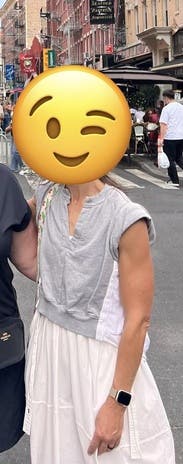 This 3.1 Philip Lim is exactly the kind of item I look for from RTR. It’s a perfect combination of casual, chic and comfortable. I sized down from my usual S to an XS to reduce the volume on my 5’2” frame. It was still a lot from the rear view but it’s obviously not a fitted silhouette. The sweatshirt material was a little warm outdoors with temps over 90° but worked well indoors with air conditioning. I think it would hang better on someone with a smaller chest as my 32DDDs make it hang away from the body. Great summer rental for next level casual.