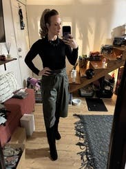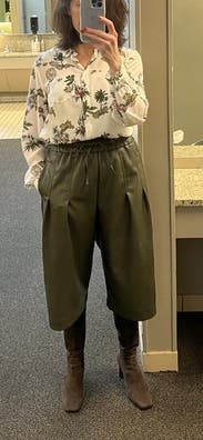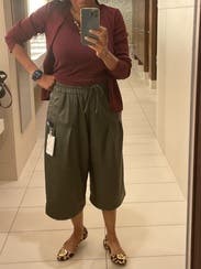 I cannot say more. These pants are so beautiful and buttery! Im 4’7, so the cropped length was perfect. The pleats help disguise any muffin top you may have. It’s extremely versatile! If I could afford it, I’d buy these!