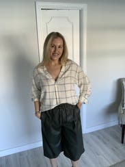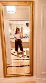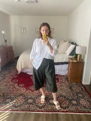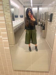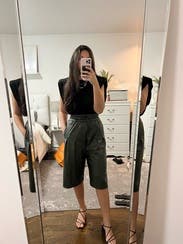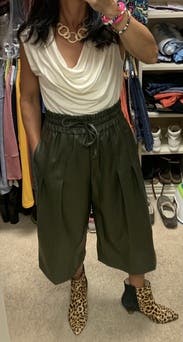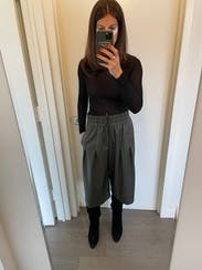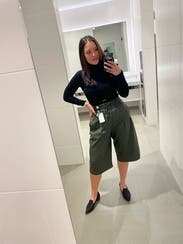 Rented these for a movie date with the girls and they did not disappoint! Super soft material, the waist was comfy and the perfect amount of tight/stretch. Love the cut and the length, they hit just below my knees on my 5’5” frame. Paired with polka dot shirt & camo shoes and loved the whole look. Highly recommend!