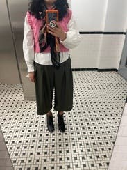 Not that every outfit should, but these coullotts did nothing for my figure. Yes, I’m petit but the high waste just made me feel boxy. I loved the color, though.