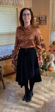 A really well made, quality skirt. Just longer than I would have liked and a little too A line. A great item for taller ladies or those who like the A line shape. I just prefer straight.