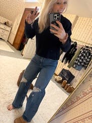 I love, love, love this sweater. The length was perfect to pair with high waisted jeans and a pair of Chelsea boots.