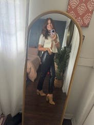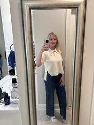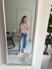 Loved this top! The slits go up really high just as an fyi- but still really cute with high waist pants.