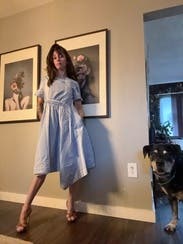 this has quickly become one of my favorite designers. The attention to detail and craftsmanship is outstanding and the slight modifications they make to what might be an ordinary dress make it an extra extraordinary one I always get so many compliments. My husband’s response was Alice from Wonderland. I’m gonna wear this one as many times as I can. I am vain, but that’s not why I posted so many photos. I’m just not good at posing and I wanted to show the dress at its best and also my dog.