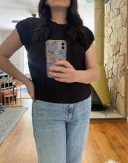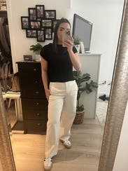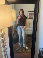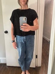 Such an easy black top to wear with everything. Maybe it's a little cropped for my long torso but I didn't have a problem wearing it with high-waisted items. It was billowy and flattering.