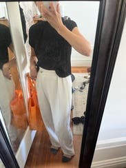 I have a love/hate thing with this top. I wore it several times and really wanted to buy it, but it's slightly cropped so I have to keep tucking it in. The sleeves are.. eh? It looks great from the front but I took a picture of the sleeves from the side. It would be great if I could size down, but then the crop would be even more of a problem.