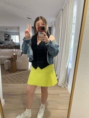 Wore to convention for work. Was super cute and could def be worn without the shirt, but it was cold that day. Would rent again