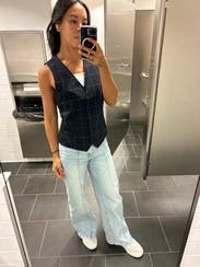 This vest is fire and if it wasn’t so pricey I would buy it in a heartbeat. There’s a little bralette that’s attached so you can wear several different ways. Perfect for easy office outfit that’s comfortable but polished.