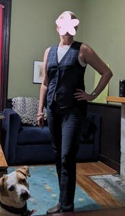 My tween and husband said they were confused. My boss LOVED it and I received several compliments throughout the day. This is why I RTR, to try unconventional looks that normally would be cost prohibitive. The vest was a little big, but so was my shirt and it worked out. Brought a little avant-garde professionalism to a more traditional office.