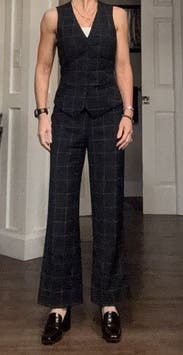 Loved this vest! Fit great - added a l/s silk blouse on a chilly day which helped contrast the tailored fit. Huge fun, rent the set!