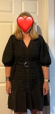 Lovely, stylish dress that is perfect for a dinner out. Classic yet contemporary with puff sleeves and ruffle hem. Elevated from everyday, but comfortable and stylish enough for a night out. The size 4 fit perfectly.