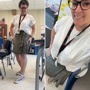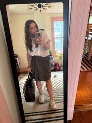 Definitely my vibe. Cute and easy to wear. The other reviews helped me understand how it wears (one piece, partially tucked). I teach middle school and it’s perfect for the fall or spring. Considering buying.