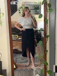 With a high waisted skirt, this is perfect! Great for a hot day despite the thick fabric. It’s give It’s giving: busy lady on the run- too focused to worry about ironing! lol
