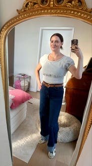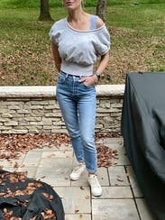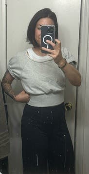 Loved this. Not too cropped with a high waisted pant. Flattering alternative to a t shirt.