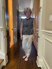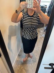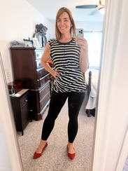 Elevated a casual outfit. Cute and very structured. A bit tight to me, but the structure of the tee kept it looking good.