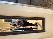 Worn three times - with black 3/4 length wide leg pants and Jean jacket (dinner), same pants with white blazer (business casual), and white jeans (graduation). Very fitted but ruched so flattering. Very hard to get on and off — I need help pulling it off! So consider sizing up. If large bust definitely size up.