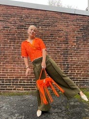The orange is VERY bright. Fabric a bit itchy. Cute for work -- wish I'd noticed the matching set of shorts prior to renting just the top!