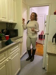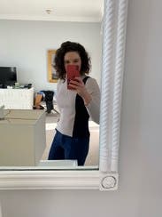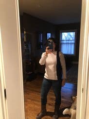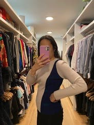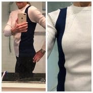 I enjoyed this sweater. Might rent again in the fall. Nice medium weight. The contrasting navy stripe makes it different and fun. My only sort-of complaint is that the body of the sweater is a darker/different color than it appears in the online photos. I see reviews that say it’s a dark cream. Maybe? It almost looks lavender. Whatever the color, it did look nice on. I wore it more than once.