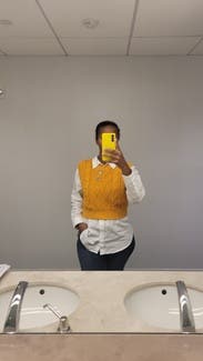 I'm obsessed with sweater vests and love wearing them with button-downs, t-shirts or over a dress. This one is such a great color and really pops. I received lots of compliments. It is on the shorter side by design so if you're looking for something oversized, I would recommend sizing up.