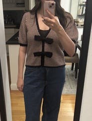The proportions of this weren't my favorite, and ultimately this just wasn't really my style. The sleeves were big and the bows were big. I also think it ran quite large. The sweater fabric was high quality though.
