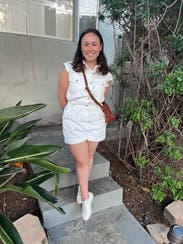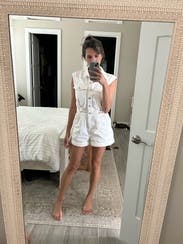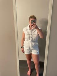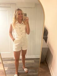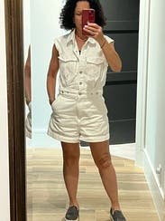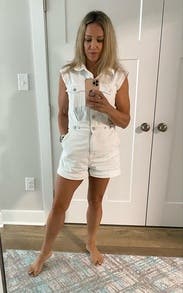 This romper is the perfect thing to throw on to look put together without really trying. I sized up to a Large, because you never know how white denim will fit. The Large fit fine - it was a little big up top but I really didn't mind that! The waist has adjustable buttons, so I definitely could have gone with a Medium. I wore this to lunch, out shopping, and running errands. I was so sad to send this one back!