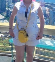 Wore this to all-white BSB concert in Vegas. Loved the look but did not love all the buttons! The romper is denim so buttonholes a bit stiff. Worth a wear but just prepare for extra time in the bathroom ;)