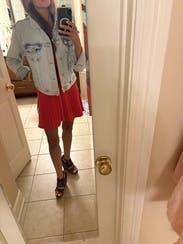 I wore this about a hundred times during 2 week rental. Runs a little big and is stretch denim but so easy and cute to throw over just about everything.