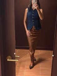 This vest just fit me right! Snug, in a good way. Paired with jeans and ballet flats and also denim skirt, boots and a bandana for a concert. Really loved this piece!