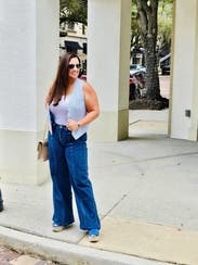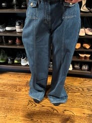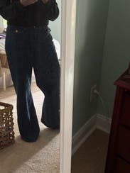 The jeans fit perfectly around the waist and butt, but they were excessively long, requiring me to pin them up and wear wedges to make them work. If a 'short' option is available, it's essential to select it, especially if you're 5'4" or under. Despite the length issue, the jeans have a great look.
