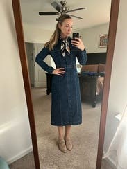 This was an elevated denim dress perfect for dressing up during the day. It was easy to throw on and felt more special than just jeans.