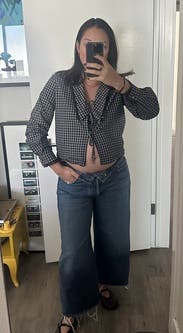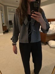 Wore this for a kids bday party, and for WFH calls. East to wear, and family gathering friendly when wearing a tank underneath! Can wear with jeans or pants or black jeans. Has a grunge vibe with the plaid and black lace trim.