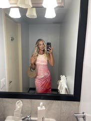 This dress looked absolutely beautiful in photos, but was a little bit lackluster in real life. The top was too snug for me while the bottom was too large and hung strangely.