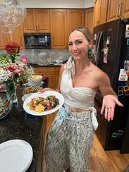 The fabric on these pants is structured and gives an elevated look without being restrictive. If between sizes, size down. I’m normally a 12 in pants due to some belly and thigh fluff and had rented this style previously in a 12 in a different pattern and it was too much fabric. Rented the 10 this time and they are perfect. Looks best with a navy or olive top. I wore this casually with white sneakers while on vacation and then dressed up for dinner with strappy heels and a nicer navy top. I’m 5’9” and the length was great. Was tempted to buy!