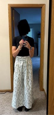 Receive many compliments wearing these out to two different occasions. Love the relaxed, baggy look well also filling polished because of the floral design and bowtie belt.