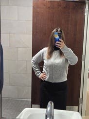 Great sweater for layering with an upscale button. Work it to work with black skirt and boots over a light black mock turtleneck. Compliments all day.