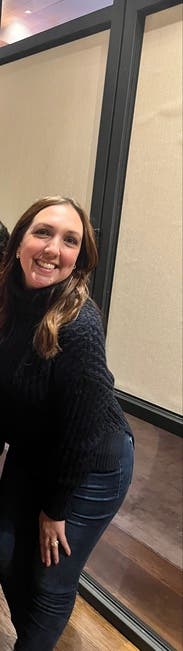 Such a cute knit sweater! This sweater is mid weight and very stretchy providing a very comfortable fit. It runs true to size and is standard bra friendly. I can't wait to style this with denim or the matching skirt!