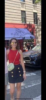I received tons of compliments when I wore this skirt. Everyone focused on the gold buttons but I would say the best part is the cut/tailoring. I feel the buttons and the cut help obscure any belly pooch, making you feel more comfortable wearing a shorter top. Adding to my "All Time Faves" list at RTR.
