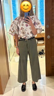 This is a very appropriate work top for all. I ticked it in and tired it at back to fit me more, it’s somewhat billowing but it would be nice fitted loose also. Match with beige on bottom I think.