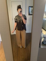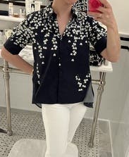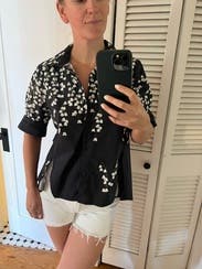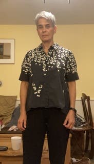 Great summer work shirt. It's lightweight, breathable, and floaty. Looked good on Zoom calls, too. I tried so hard to be "Gen Z" and wear baggy pants with this, but I couldn't make the proportion work - so skinny white denim it was!