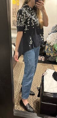 I loved this shirt and the falling floral pattern. The slit on the sides of the shirt goes a little high so if you want to tuck it in you need a very high waisted bottom