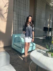 Paired this with white denim for a winery visit. So many compliments on this piece!!! I love the print and will probably keep another month.