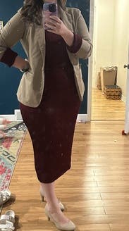 Fabric stretched through the day. Knit is a little thin and shiny. Expected slightly higher quality. Perfect for work from home or with a blazer for the office.