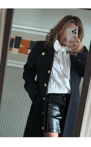 My only complaint was that it was a little hard to steam this kind of setting in its ways from people that have rented it previous. The structure and the quality to the top you could tell was completely there. It’s been very popular so I’m sure it’s had its fair share of wear. I highly recommend this top for a structured look or fun business casual. The fit was true to size.