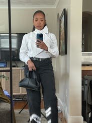 I really wanted to like this top but, it was not for me. It was really easily wrinkled, super difficult for me to make a halfway decent bow, it had a chef jacket vibe because of the buttons being to the side of your chest, and the neck felt like it was choking me. I didn’t wear this outside of trying it on.