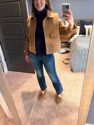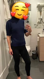 The neck is oddly uncomfortable but the look is cute. It fit well and warm warm. I couldn’t get over the neck though, it felt restrictive and paired with earrings and a mask, ended up to be annoying because they all interfered with each other lol